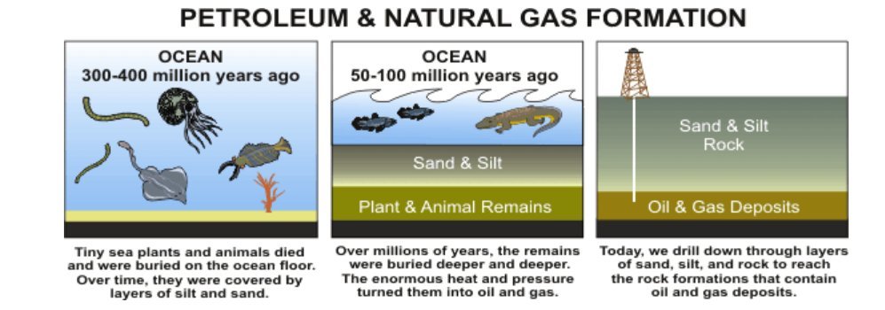 הטבע עיצב את העצים מתחת לפני הקרקע והפך אותם לפחם. הטבע יצר את הנפט, בתהליך כימי – ביולוגי ו-"עשה" ממיליארדי אצות ויצורים ימיים שאכלו מזון המלא בפחמן, דלק. החומר מתאן הוא הדרך שבה הטבע פעל על חיידקים עתיקים וקדומים ויצר את הגז טבעי.