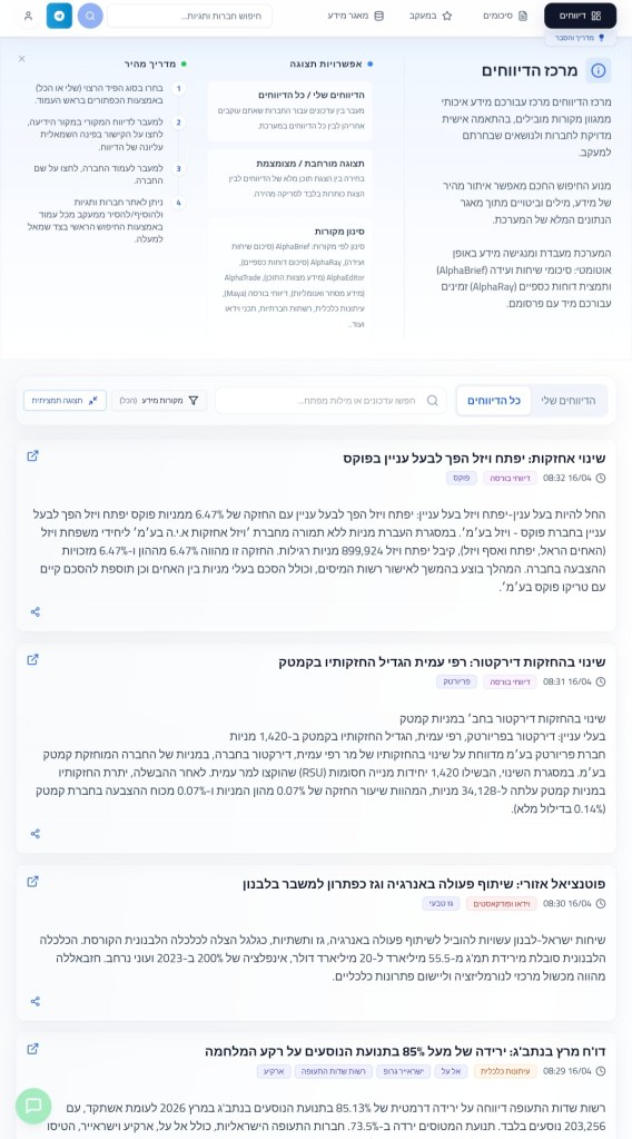 שוק ההון הישראלי פועל בקצב שבו מידע הוא המטבע היקר ביותר, אך גם היקר ביותר להשגה. עבור המשקיע המקצועי, המרדף היומיומי אחרי דיווחים, עדכונים וחדשות הפך לנטל תפעולי כבד.​במקום להתמקד בקבלת החלטות, משקיעים מוצאים את עצמם מבזבזים שעות ב"עבודת נמלים" של ניטור עשרות מקורות מידע מבוזרים.​