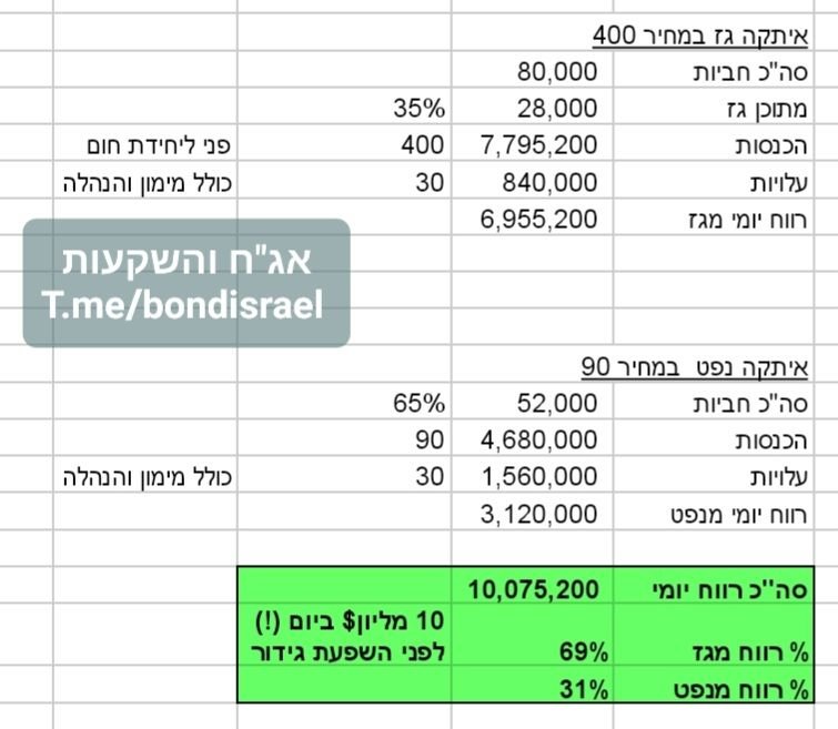 הרווח של איתקה לפני גידורים הוא 10 מיליון דולר ביום = 900 מיליון דולר ברבעון (!)